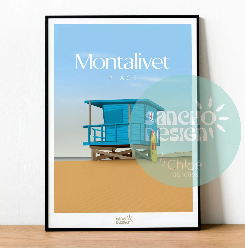 Rappelez-vous de vos vacances avec cette belle affiche de Montalivet à encadrer.