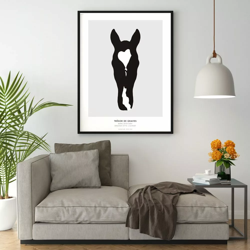 Commandez le portrait minimaliste noir et blanc de votre cheval !